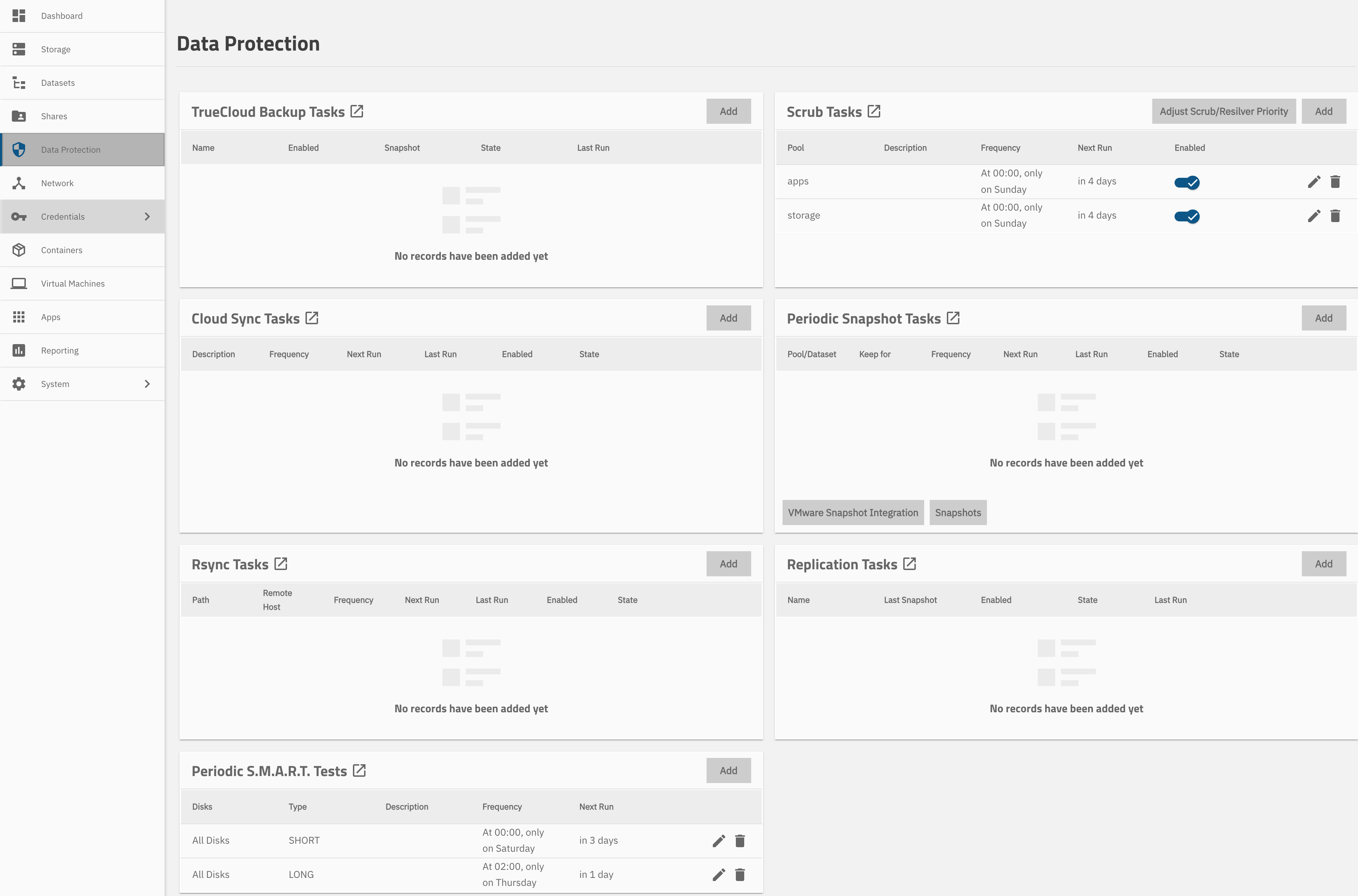 I run some data scrubbing tasks to keep my storage error-free for hopefully a long time. There is a lot more tasks you can set up in TrueNAS to keep Data Protection high. Cloud Syncs, periodic snapshots or replications tasks - a nice UI provides with an easy setup.